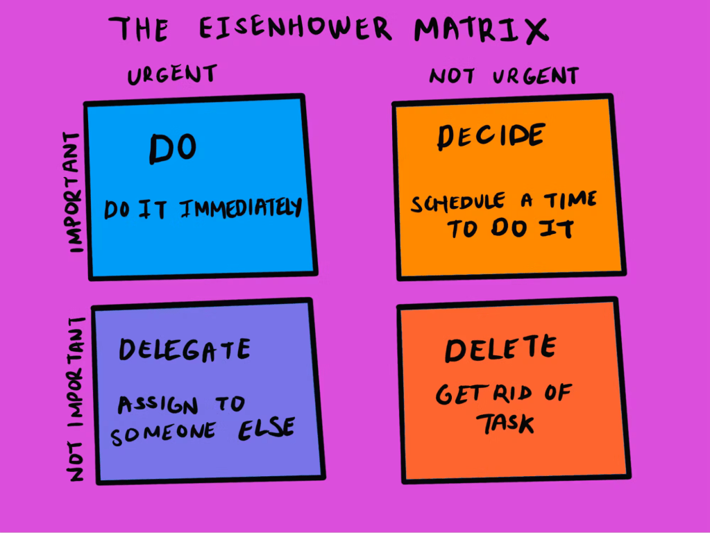 For help finding a system to use, there are many, but I’m going to highlight something called the Eisenhower Matrix: